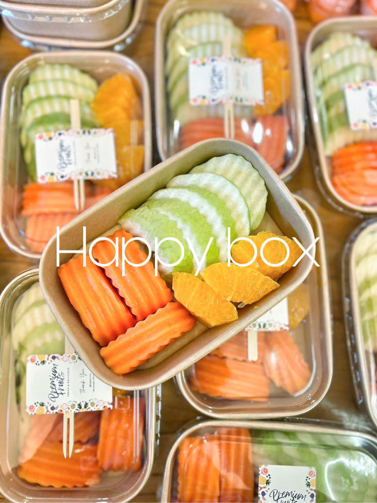 ผลไม้ตามฤดูกาลกล่องรักษ์โลก + ขนมไทย 2 ชิ้น - 65 บาท